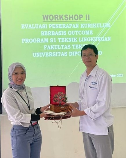 Kemudian pada hari kedua (31/10/2022) dilanjutkan dengan pemaparan materi oleh alumni S1 Teknik Lingkungan yang sekarang menjabat sebagai Direktur Pendanaan Riset dan Inovasi BRIN yaitu Ajeng Arum Sari, Ph.D.. Setelah pemaparan materi dilajut dengan sesi tanya jawab dan kerja mandiri untuk pengisian fortofolio. Diakhir sesi, dilakukan penyerahan kenang-kenangan oleh Ketua Departemen Teknik Lingkungan Universitas Diponegoro kepada pemateri. Semoga dengan adanya workshop ini bisa meningkatkan kualitas pendidikan dan sistem pengajaran yang baik untuk program studi S1 Teknik Lingkungan kedepannya.