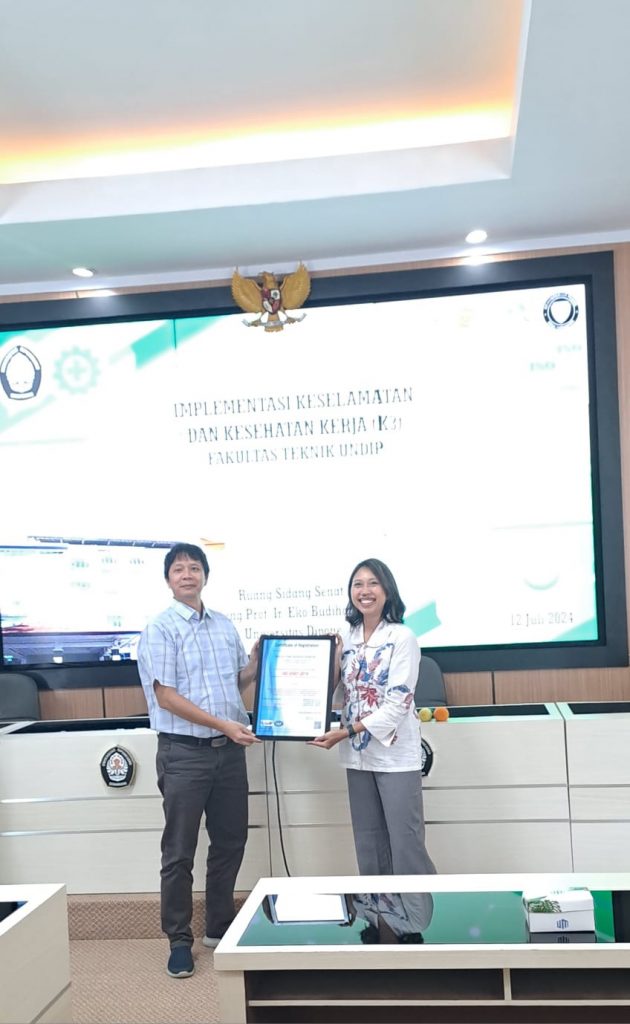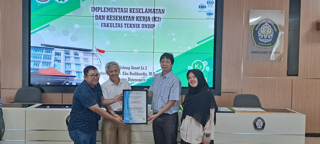 Fakultas Teknik Universitas Diponegoro berhasil mempertahankan sertifikat ISO 45001:2018 dalam implementasi Sistem Manajemen Keselamatan dan Kesehatan Kerja (SMK3) di lingkungan FT UNDIP pada hari Jumat, 12 Juli 2024.