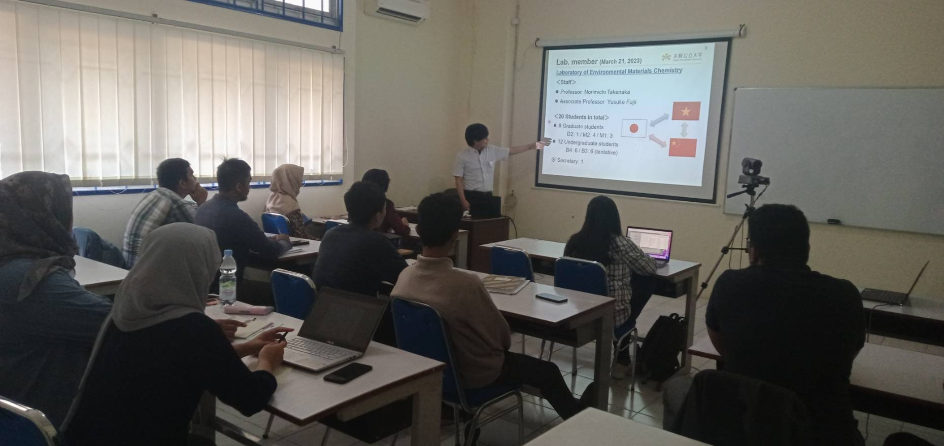 Dr. Fujii bekerjasama dengan Dr. Haryono akan melakukan pengukuran mikroplastik selama setahun yaitu 2023 – 2024 yang meliputi pengukuran musim hujan dan musim kemarau. Penelitian ini didukung oleh pendanaan dari Jepang. Dalam kesempatan ini Dr. Fujii melakukan brief sharing knowledge tentang penelitian mikroplastik di udara ambien kepada mahasiswa Magister Teknik Lingkungan Undip. Dr Fujii juga melakukan briefing tentang pengukuran mikroplastik ke laboran dan asisten lab di Lab Kualitas Udara Departemen Teknik Lingkungan Universitas Diponegoro. Lokasi pengukuran mikroplastik ada di gedung Training Centre Undip. Semoga penelitian ini dapat memberikan gambaran kondisi kualitas udara ambien di kota kota di Indonesia terutama tentang pencemaran mikroplastik di udara ambien.