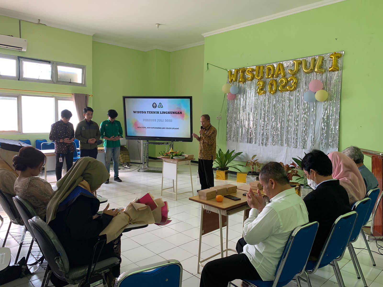 Acara dilanjutkan dengan potong tumpeng, games, sharing session, dan pemberian penghargaan serta medali kepada para wisudawan di dalam Gedung Teknik Lingkungan UNDIP bersama dengan bapak ibu dosen teknik lingkungan beserta para orang tua wisudawan wisudawati. Acara diakhiri dengan pemutaran video kenang-kenangan para Wisudawan selama berkuliah di Teknik Lingkungan UNDIP.